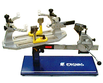 - 2 diamond-coated, dual-action swivel clamps can move in any direction up and down; and can handle all types of racquets without extra accessories.